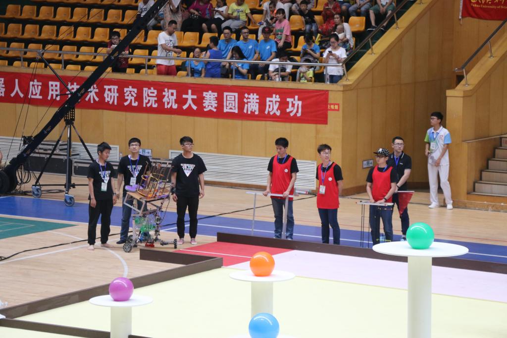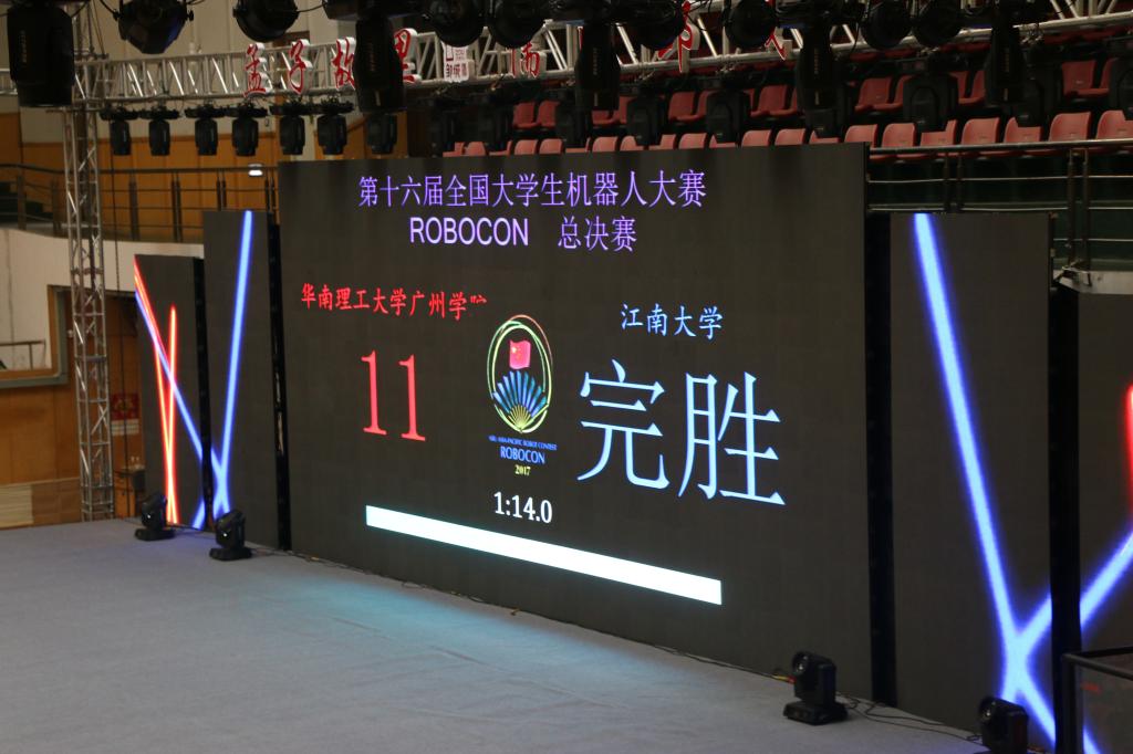 由于今年参赛队伍较多,因此通过初赛后,大赛分为南北两个赛区进行复赛,最终选出南北赛区前16强会师全国总决赛。君远学院机器人队以南方赛区第13名的成绩进入全国总决赛。利用复赛和决赛之间的10天间隙,队员们争分夺秒,废寝忘食,进一步改进和完善抛掷机器人,使其性能大幅度提升。最终,在决赛中发挥出色,战胜了来自南方赛区的第四、第五名强队,杀入全国16强。