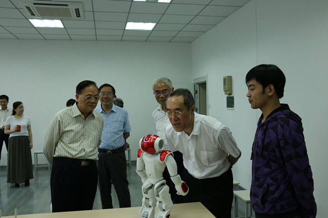 毕业典礼结束后,唐先生一行人及君远学院师生代表前往君远学院。在君远学院院长张秋菊的带领下,唐先生一行人参观君远实验室、欣赏机器人表演。随后,唐英年先生与君远师生进行了座谈会。